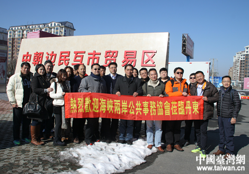 中國臺灣網3月2日丹東訊 2月26日,臺灣海峽兩岸公共事務協會遼寧參訪團在丹參訪期間,對中朝邊民互市貿易區進行考察。省、市臺辦及相關人員陪同考察。