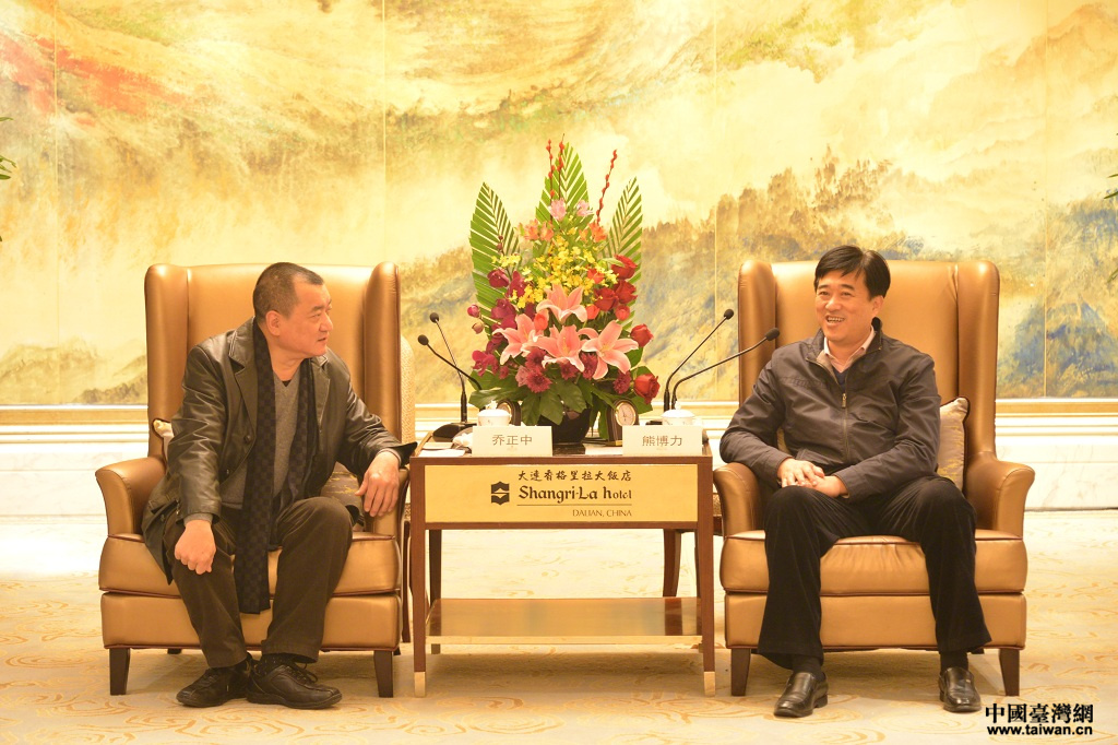大連市委常委、市委秘書長熊博力會見臺灣中華青雁和平教育基金會秘書長喬正中一行。(圖片來源:大連市臺辦)