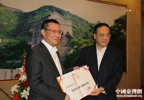 黃希文先生(左)受聘(圖片來源:丹東市臺辦)