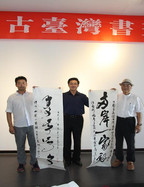8月2日下午,參展的臺灣、烏海兩地書畫家在當代中國書法藝術館進行了現(xiàn)場書畫交流,自治區(qū)臺辦主任楊利民、臺灣書法家內(nèi)蒙古參訪團團長宋建華出席了活動。