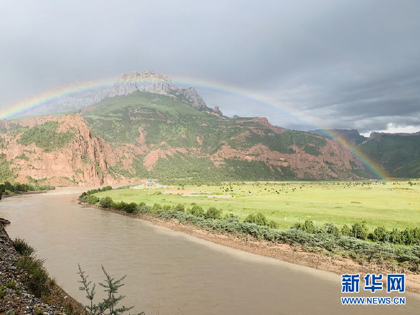 這是8月22日在昂賽大峽谷拍攝的彩虹。新華社記者 李琳海 攝