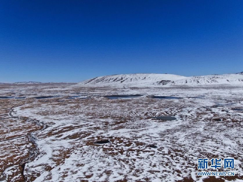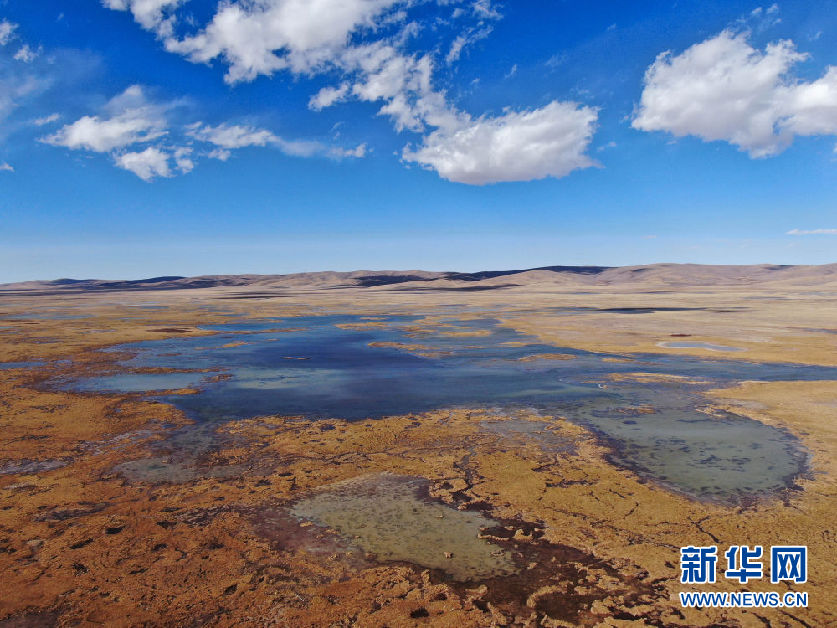 這是10月30日在青海省果洛藏族自治州瑪多縣境內拍攝的一處濕地(無人機照片)。新華社記者 張龍 攝