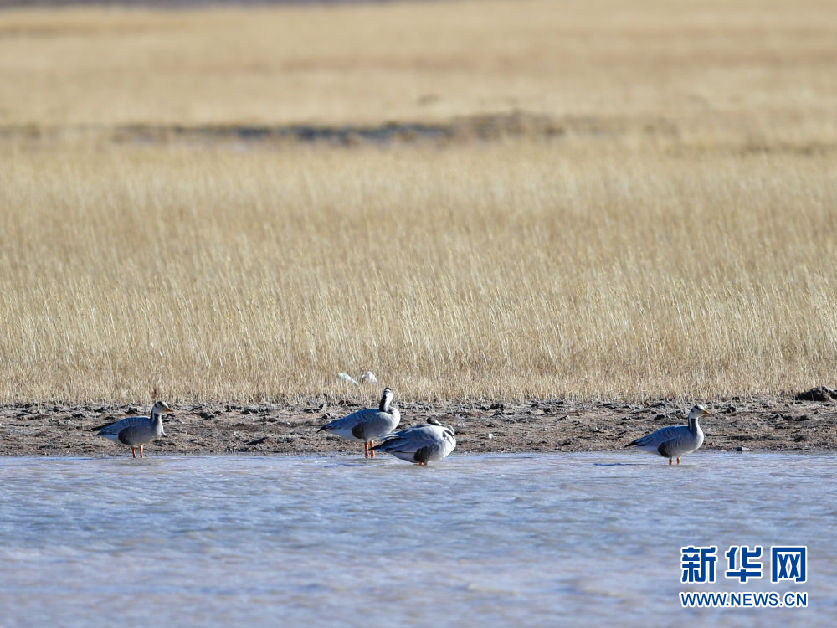 10月30日,在青海省果洛藏族自治州瑪多縣境內,斑頭雁在水中休憩。新華社記者 張龍 攝