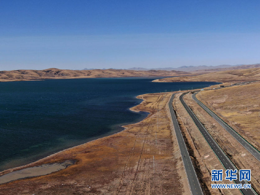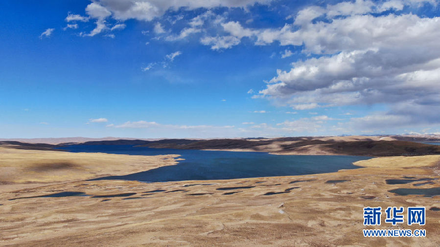 這是10月30日在青海省果洛藏族自治州瑪多縣境內拍攝的一處湖泊(無人機照片)。新華社記者 張龍 攝