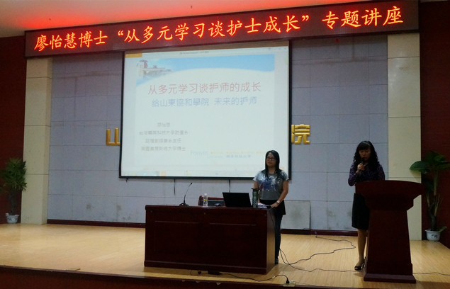 輔英科技大學(xué)助產(chǎn)系主任廖怡惠博士在學(xué)術(shù)報告廳為同學(xué)們做了題為“從多元學(xué)習(xí)談護師成長”的學(xué)術(shù)講座。廖博士還與學(xué)校教師分享了臺灣護理與助產(chǎn)專業(yè)建設(shè)的發(fā)展趨勢,并講述了輔英科大助產(chǎn)專業(yè)的發(fā)展與課程設(shè)置概況以及在這方面取得的成就。講座結(jié)束后,護理學(xué)院青年教師與廖博士進行了學(xué)術(shù)交流。