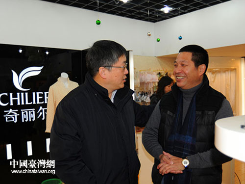 上海市臺辦巡視員季平訪問上海奇麗爾制衣有限公司。(圖片來源:上海市臺辦)