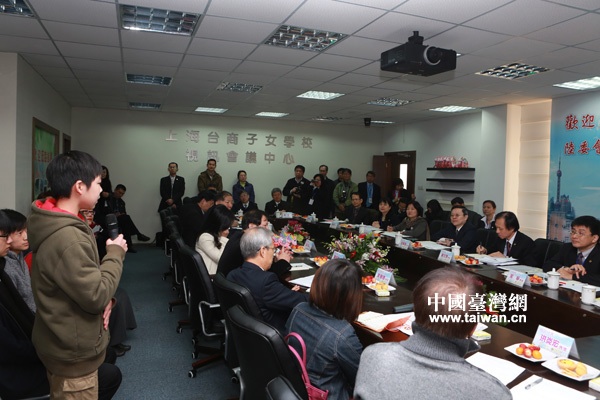 14日上午,臺灣陸委會負責人王郁琦一行來到上海臺商子女學校進行參訪,并與學校教師、學生和學生家長代表座談。(中國臺灣網 田云鵬 攝)