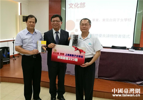 配合這一次書展,文化部也特別關(guān)注在大陸的臺商學校,帶來金鼎獎及金漫獎優(yōu)質(zhì)書籍頒贈給三所臺商學校。8月19日上午,舉行捐贈儀式。上海臺商子女學校黃棋楓校長、華東臺商子女學校王先念校長、東莞臺商子弟學校王炎磷校長接受頒贈。三所臺商學校校長對文化部表達最深摯的感謝,許諾將所頒贈書籍放置圖書館提供借閱,并加強推廣閱讀活動;三所臺校的師生們將會是這次贈書的最佳受益者。