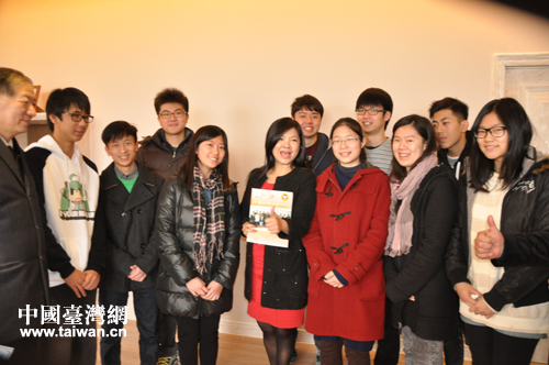 上海臺(tái)商子女學(xué)校的領(lǐng)導(dǎo)13日正在與獲得三標(biāo)的部分臺(tái)灣藉同學(xué)在一起。(上海臺(tái)協(xié) 玉龍 攝)