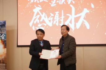 西北大學藝術學院馬永寬書記接受組委會蕭建華頒發的感謝狀。(攝影:溫雅)