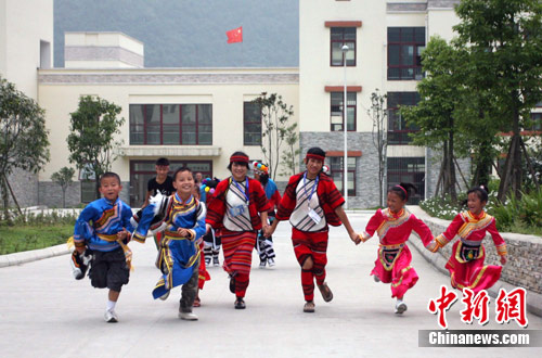 7月30日,臺灣民意代表馬文君帶領的126名來自臺灣“9·21”大地震災區和“8·8”風災災區的師生,來到四川北川擂鼓鎮八一中學,與該校師生開展文化交流活動。中新社發 劉忠俊 攝