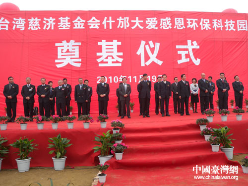 11月19日,臺灣慈濟基金會大愛感恩環保科技園在什邡市京什工業園內正式奠基。圖片來源:四川省臺辦