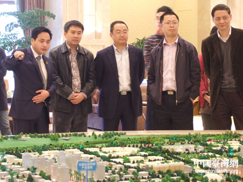 市臺辦一行參觀蒲江縣壽安新城總體規劃模型。圖片來源:成都市臺辦