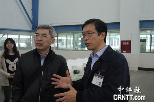 作為一家臺灣媒體,臺資企業在四川發展情況如何,是走親團關注的焦點。29日上午,走親團來到成都市青白江區臺玻集團臺嘉成都玻纖有限公司,了解企業生產情況并對來自臺灣的總經理胡文亮進行采訪。