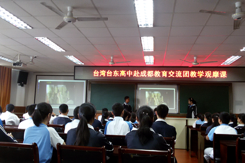 兩岸同根同源、同文同種,文化根基、教育傳統相同,也沒有語言和文字的隔閡和障礙。同學們走進教室、實驗室、音樂室、美術室……看看這兒、摸摸那兒,一切既陌生、又熟悉,用心感覺著大陸的校園氣息。鐵中學生曾獲得過世界武術冠軍,看完他們精彩的武術表演后,兩校學生互教互學了幾招太極動作,共同舞起太極扇。化學實驗課上,兩校學生一對一做實驗,交流學習體會。英語課上,兩校學生用英語互動介紹自己。豐富多彩的互動體驗式交流活動讓學生們感慨良多:“成都、臺灣的學生各有所長,雖然接觸的時間很短暫,但大家交流意愿很強。”“校園的交流只是學生交流的開始,交流中得到的情感才是最珍貴的,希望類似的交流活動經常開展、長久延續下去。”臺東高中校長張瑞杰先生希望通過開展校際教育、教學交流,讓同學們在活動中增長知識、取長補短、傳播文化、獲取友誼,搭建起兩岸學生之間交流的橋梁,共同感知博大精深的中華文化和現代文明。(中國臺灣網、成都市臺辦聯合報道)