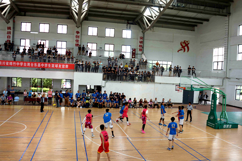 在籃球友誼賽場上拼搏奮進的臺東、綿竹兩地學子