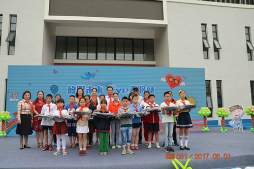 中國臺灣網6月5日成都訊 6月1日,由成都市文明辦、市臺辦、市關工委、市教育局、上海依視路視力健康基金會、臺資企業寶島眼鏡共同主辦的“放眼未來 EYE不將就”2017成都關愛兒童視力健康公益行捐贈儀式在邛崍市文昌小學舉行。在捐贈儀式上,臺資企業晶華寶島眼鏡(四川)有限公司為全市1500名困境兒童捐贈愛心眼鏡1500副,并向困境兒童代表贈送了 “六·一”大禮包。全市各區(市)縣困境兒童代表和文昌小學的學生共計1000余名參加了捐贈儀式。