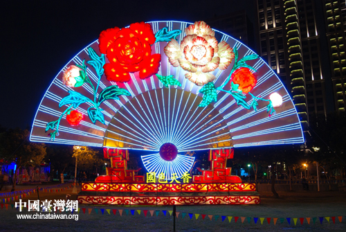 展出的《國色天香》大型扇形花燈。(圖片來源:四川省臺辦)