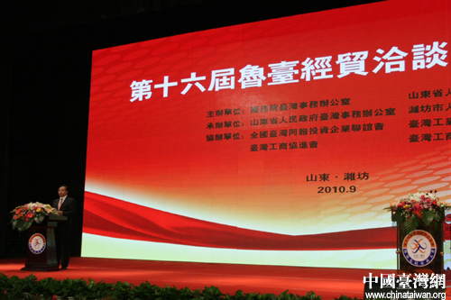 中共山東省委副書記、省長姜大明在致辭中表示,山東將緊緊抓住兩岸經濟合作框架協議簽署的有利時機,繼續大力推動魯臺兩地在先進制造業、高新技術產業、節能環保產業、現代服務業和現代農業等重點區域的合作,積極貫徹中央惠及臺灣同胞的各項政策措施,改善投資環境,依法維護臺灣同胞的正當權益,幫助臺資企業轉型升級,促進臺資企業在山東的持續發展壯大,推動魯臺經濟合作朝著更深層次延伸。