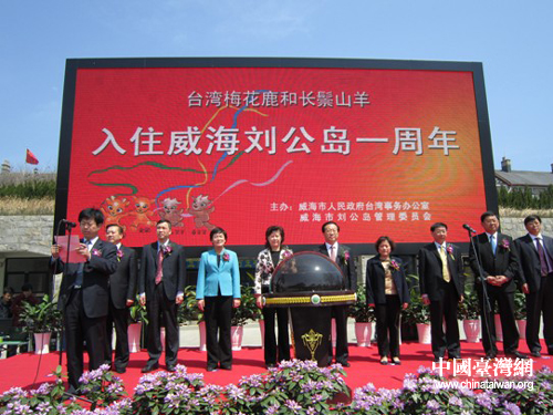 中國臺灣網4月20日威海消息 16日,臺灣梅花鹿和長鬃山羊來到威海整整一周年了。當日,臺灣梅花鹿和長鬃山羊入住一周年紀念活動在劉公島水師廣場舉行,300余人參加了此次紀念活動。