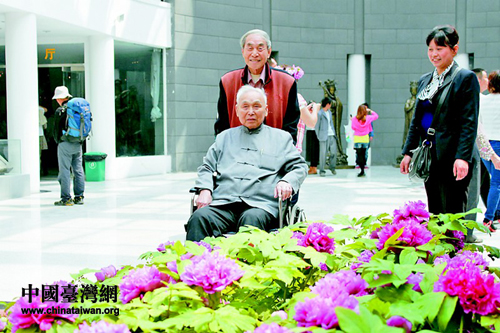 中國臺灣網4月23日菏澤消息  日前,在曹州牡丹園國花館內,兩名年邁的賞花游客特別引人注意,其中一人滿頭白發,戴著助聽器,坐在輪椅上,另一名老人推著他,兩人邊欣賞風景,邊說說笑笑,十分開心。經了解,坐在輪椅上的老人叫袁樂民,今年92歲,推輪椅的叫趙慕鶴,今年101歲。兩位老人都來自臺灣,此次專程來菏澤觀賞牡丹花。