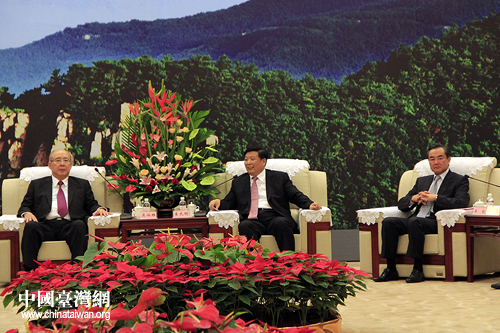 中共中央臺辦、國務院臺辦主任王毅參加會見。