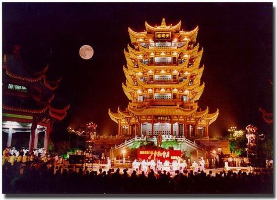 黃鶴樓始建于三國時期吳黃武二年(公元223年),屢毀屢建,現在的黃鶴樓于1985年建成。外形雄偉壯觀、古樸典雅,是武漢市的標志建筑。