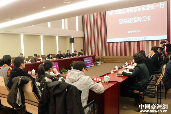 1月15日上午,全國人大常委會(huì)委員、海峽兩岸關(guān)系協(xié)會(huì)會(huì)長張志軍與上海中醫(yī)藥大學(xué)臺(tái)籍師生交流座談。(中國臺(tái)灣網(wǎng) 王怡然 攝)