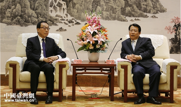 天津市委常委、市委統(tǒng)戰(zhàn)部部長冀國強會見中國國民黨中常委、臺灣中華經濟貿易合作促進會會長劉大貝一行。(圖片來源:天津市臺辦)