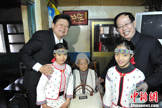 2月22日,廣西壯族自治區(qū)黨委副書記危朝安一行深入臺灣花蓮基層民眾家中和田間地頭,與他們敘親情、談友誼,共同探討農(nóng)業(yè)生產(chǎn)發(fā)展之路。在萬榮鄉(xiāng)萬榮村,危朝安看望了80歲村民彭記妹,向她贈送了慰問品。圖為危朝安(右)、花蓮縣縣長傅崐萁與老人及老人孫女合影。中新社發(fā) 蔣雪林