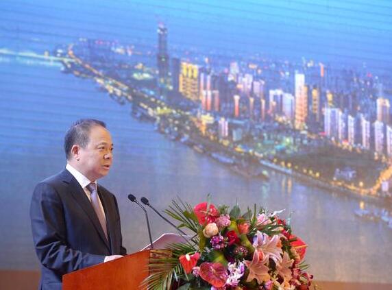 武漢市長萬勇主持第十四屆湖北·武漢臺灣周的漢臺經貿合作大會。 記者周超 攝