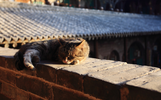 鎮子里,年輕人大都外出打工了,留下的多半是老人,越發讓人感到了古老的文明好像已經開始沉睡。時光在這里,也踱著四方小步,不時的駐足觀看,悠然自得。孩子在高興歡快的游戲,打鬧,這種快樂,是城里的孩子所體會和感受不到的。而墻頭這只慵懶的貓咪的神情,又是多少在都市奔波,打拼的所謂“白領”所羨慕的呢?