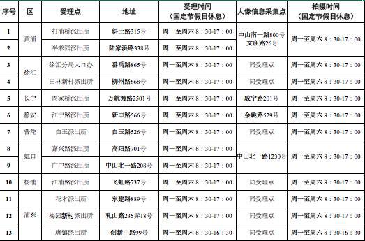 (一)前往居住地所在區(qū)的指定受理點申領(lǐng)居住證,就近采集人像信息(受理點及人像信息采集點信息附后):擬前往黃浦、長寧、靜安、虹口等區(qū)受理點申領(lǐng)居住證的港澳臺人員,需先就近至本區(qū)指定的人像信息采集點采集人像信息;擬前往本市其他區(qū)受理點申領(lǐng)居住證的港澳臺人員,可直接至受理點內(nèi)的人像信息采集點采集人像信息;申領(lǐng)居住證的港澳臺居民(包括不滿16周歲的)都應(yīng)當(dāng)采集人像信息;