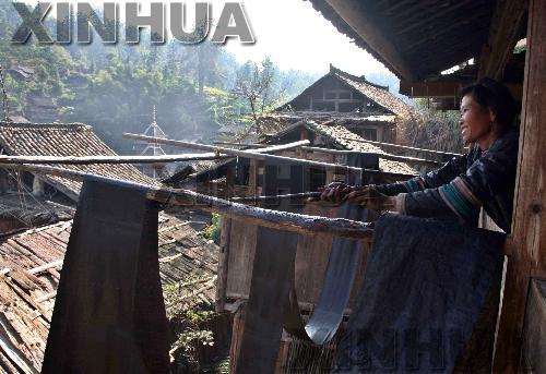 11月29日,貴州侗族婦女在晾曬“亮布”。