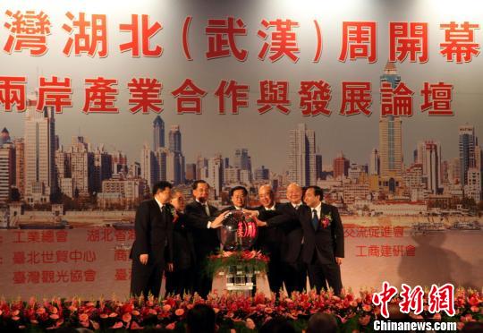 5月8日,2012臺灣湖北(武漢)周在臺北圓山飯店開幕。湖北省省長王國生(中)、中國國民黨榮譽主席連戰(左3)、吳伯雄(左5)出席開幕式。 陳立宇 攝