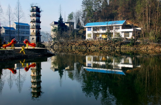 在利川市團堡鎮境內的318國道旁,有一汪碧波蕩漾的湖水,當地人把這里叫做“野貓水”。湖邊有座古樸的宜影塔,古塔四周山青水秀,人杰地靈,塔身倒影湖中,裝點著這里的山山水水。
