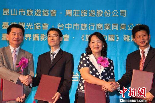 昆山市旅游協(xié)會(huì)與臺(tái)灣旅游觀光協(xié)會(huì)、周莊景區(qū)與臺(tái)灣合作旅行社分別簽訂了合作備忘錄。