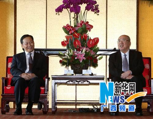 4月22日,中共廣西壯族自治區黨委書記彭清華在臺北拜訪中國國民黨榮譽主席吳伯雄。新華社記者 謝秀棟 攝