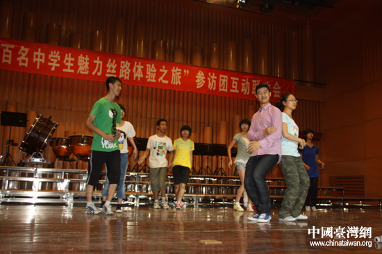 參加“隴臺百名中學生魅力絲路體驗之旅”活動的臺灣學生表演舞蹈。(中國臺灣網 宿靜 攝)