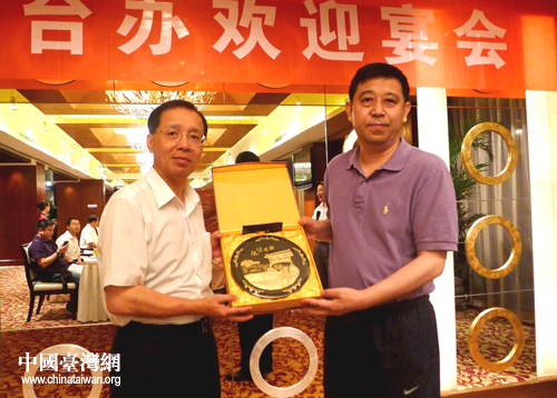 會見后,陜西省臺辦向代表團成員贈送了具有陜西特色的禮品。