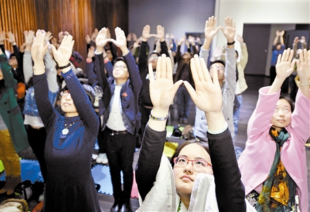 白領上班族在休息時間學習應用戲劇基礎課程。本報記者 劉乃文 攝