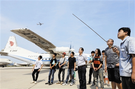 圖為臺灣師生在中國民航大學(xué)與不同時期的飛機(jī)“零距離接觸”。 本報記者 王曉明 攝影報道