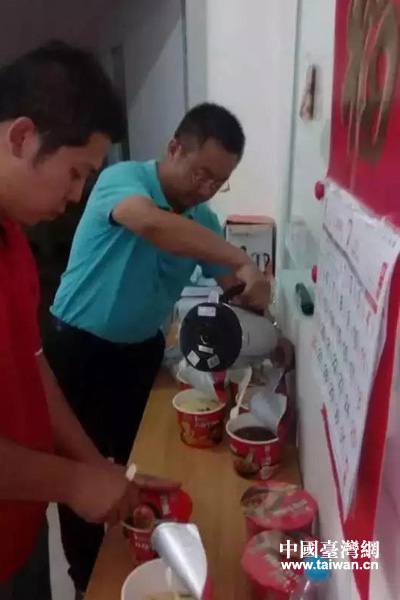 康師傅員工在搬運方便面(中國臺灣網發圖)
