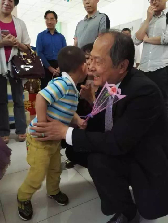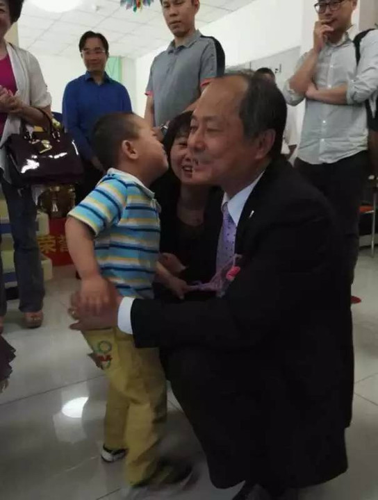 當幾名小朋友跳了一段舞蹈歡迎來自臺灣的爺爺奶奶、叔叔阿姨后,天真的孩子們主動前來尋求擁抱。爺爺奶奶、叔叔阿姨們非常高興地抱起孩子,忍不住和孩子們臉貼著臉,像一家人一樣親昵地逗樂起來。看著可愛的孩子們,幾位愛心爆棚的人士現場就詢問起如何收養的問題。