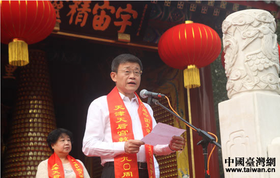國務院臺辦副主任龍明彪為天后宮授牌。(中國臺灣網 吳曉寒 攝)