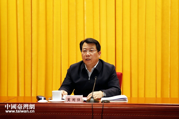 市委常委、市委統戰部部長冀國強出席會議并講話。(圖片來源:天津市臺辦)