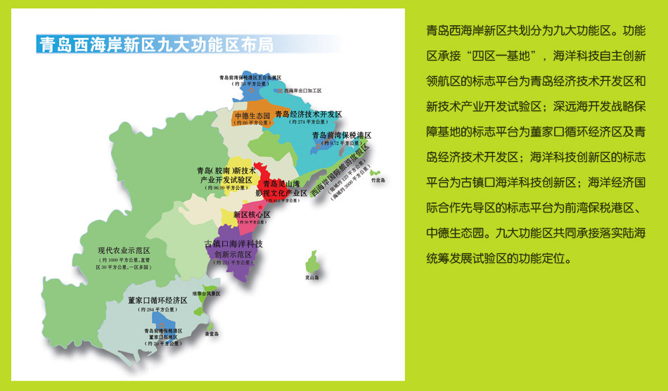 2014年6月3日,經國務院批復設立,是全國第九個國家級新區。新區位于東經120°,北緯36°,地處膠州灣西岸,包括青島市黃島區全部行政區域,其中陸域面積2096平方公里,海域面積約5000平方公里,海岸線282公里;沿海分布23處港灣、21座島嶼,灘涂面積83平方公里;共有27個街鎮,常住…… 【詳情】