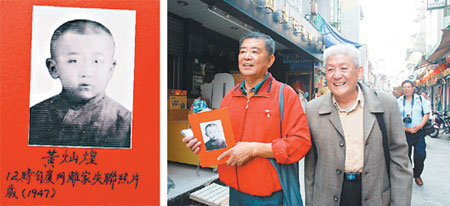 中新網11月18日電 據臺灣聯合報報道,廈門76歲老翁黃燦輝17日經“小三通”抵金門尋親,帶著60幾年前的老照片,尋找失去聯系61年的弟弟黃燦煌,期盼有生之年能手足團圓。不過由于人事已非,一時間還沒有結果。