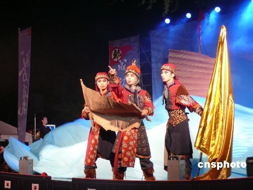 四月二十九日晚,臺灣鄭成功文化節在臺南延平郡王祠開幕。圖為臺灣東方藝術團呈現鄭成功大航海時代的偉大歷史。“鄭成功文化節”是與媽祖文化節齊名的臺灣兩大文化盛事之一,迄今已進入第八個年頭。二00九年鄭成功文化節的主題是“成功領航”。 中新社發 鄧敏 攝