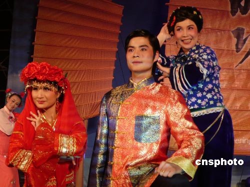 四月二十九日晚,臺灣鄭成功文化節在臺南延平郡王祠開幕。圖為廈門歌仔戲團在開幕式上演出。“鄭成功文化節”是與媽祖文化節齊名的臺灣兩大文化盛事之一,迄今已進入第八個年頭。二00九年鄭成功文化節的主題是“成功領航”。 中新社發 鄧敏 攝